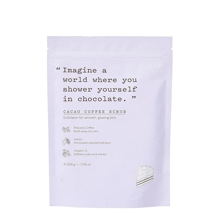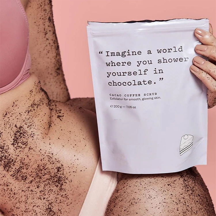 El diseño en bolsas de 200 g es conveniente para llevar y almacenar. Ya sea que disfrute de un lujoso momento de cuidado de la piel en casa o viaje, puede satisfacer fácilmente sus necesidades de cuidado de la piel. Cada vez que lo usa, simplemente saque una cantidad adecuada de matorral de café, aplíquelo de manera uniforme sobre la piel de su cuerpo y masajee suavemente por un momento. Testificará los increíbles cambios de su piel. Con un rendimiento de costo extremadamente alto, permite a más personas tener fácilmente una experiencia de cuidado de la piel a nivel profesional.
